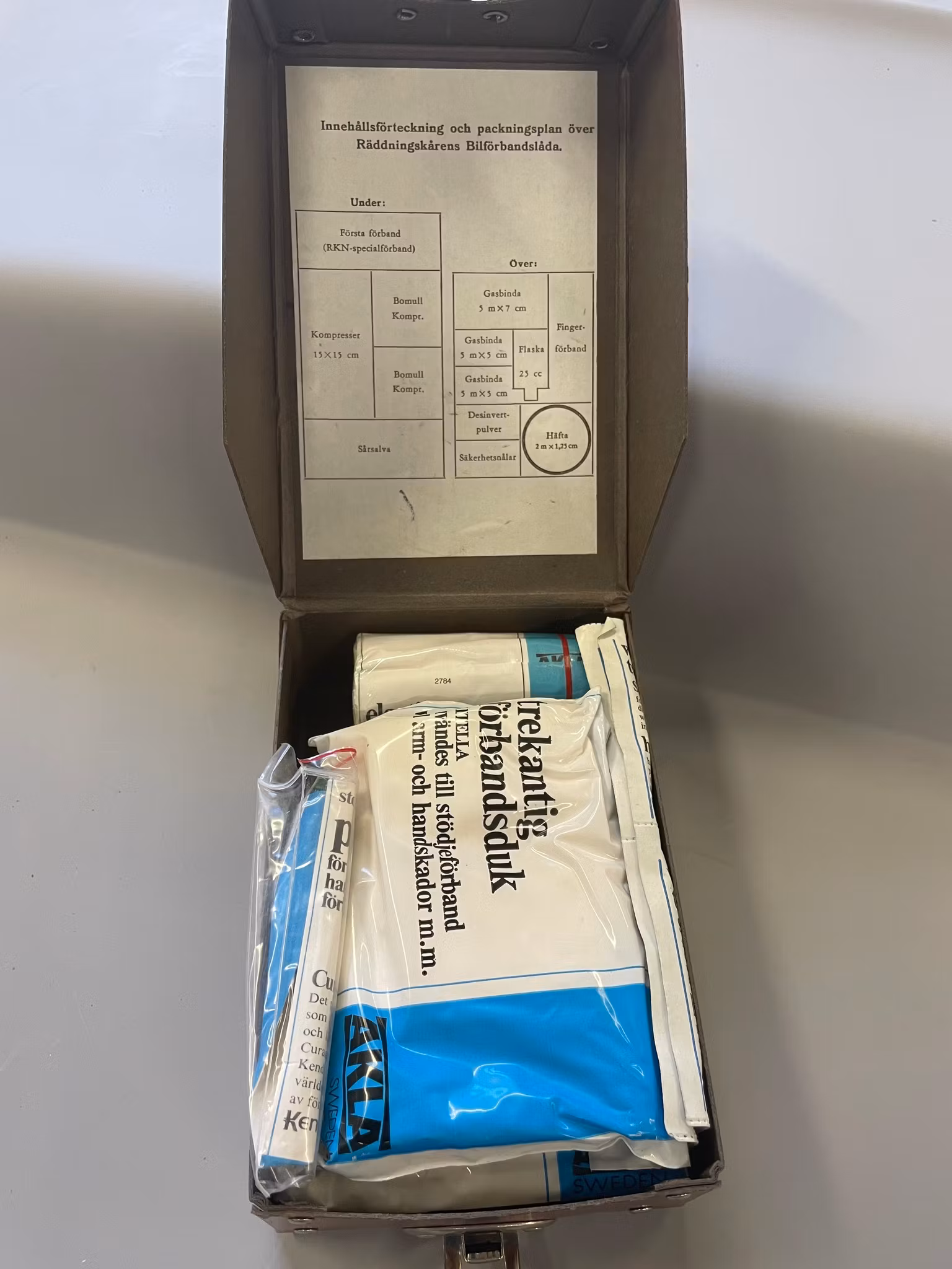 Förbandslåda bil Räddningskåren 300 kr Lådan + innehåll är i nyskick. Passar utmärkt i en 50/60talsbil Produkten är tyvärr slut i lager. Artikelnummer: 480 Leverantör: PLcollection Dela Information Lådan + innehåll är i nyskick. Passar utmärkt i en 50/60talsbil