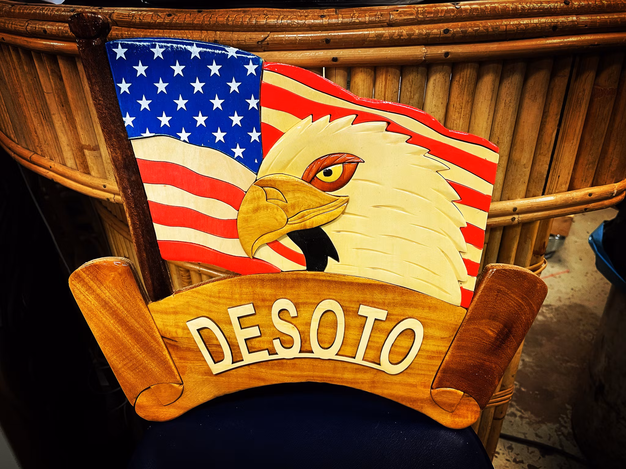 DeSotoTräskylt 249 kr Dekorativ skylt med DeSoto text. Mått 40cm x 35cm Produkten är tyvärr slut i lager. Artikelnummer: 578 Leverantör: PLcollection Dela Information Dekorativ skylt med DeSoto text. Mått 40cm x 35cm
